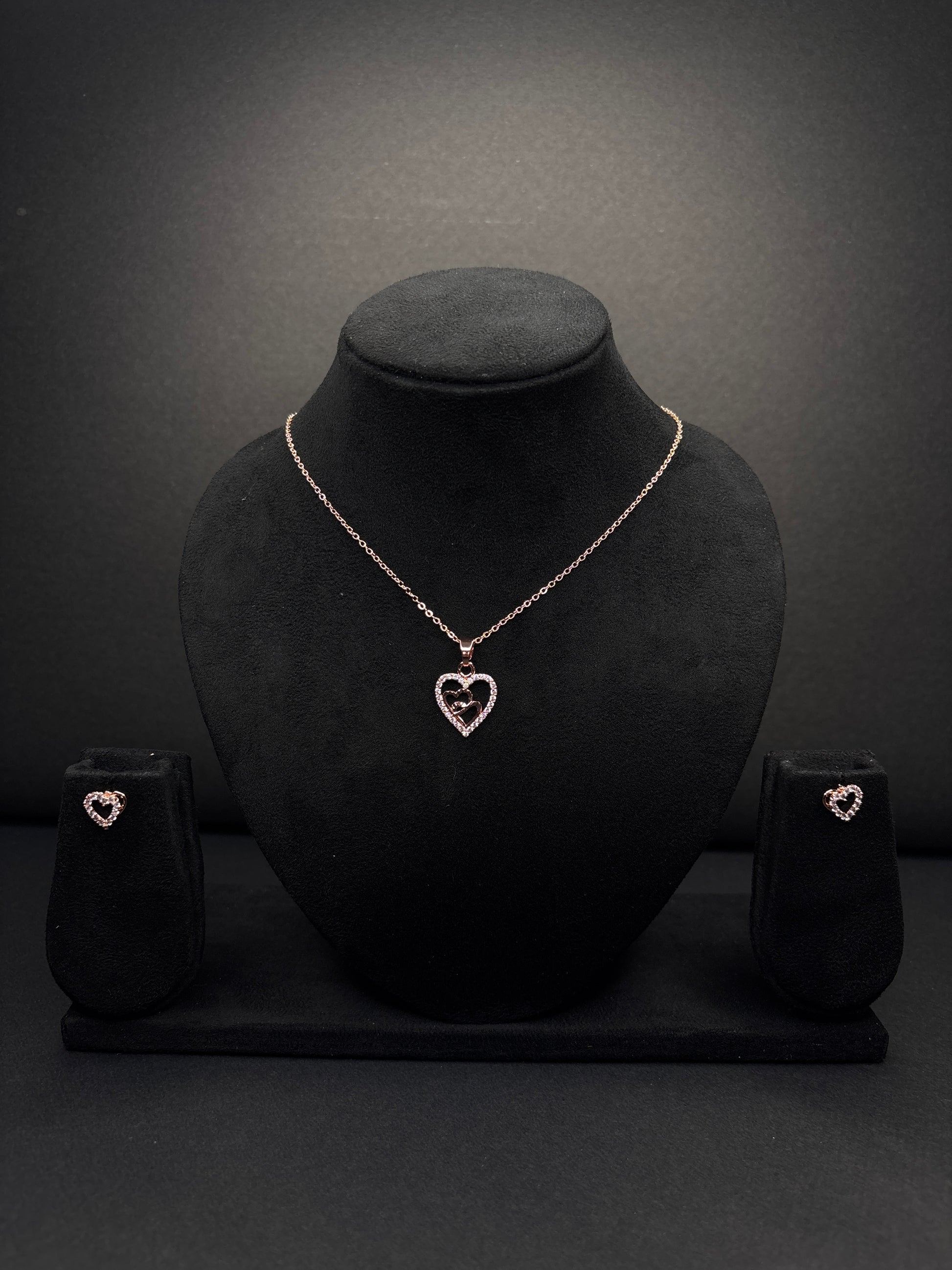 Rose Gold AD Diamond Heart Pendant Necklace with Earrings (JYO8138)